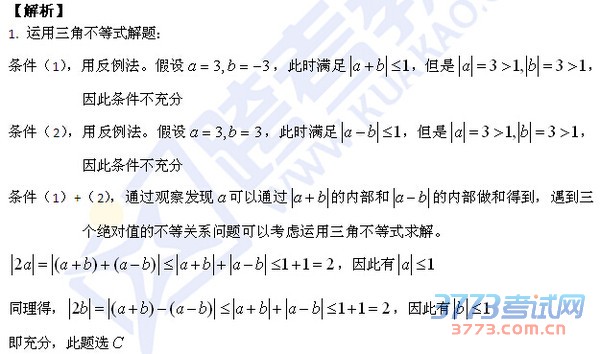 跨考教育张亚男老师强调绝对值的三角不等式可以从两个角度考查: