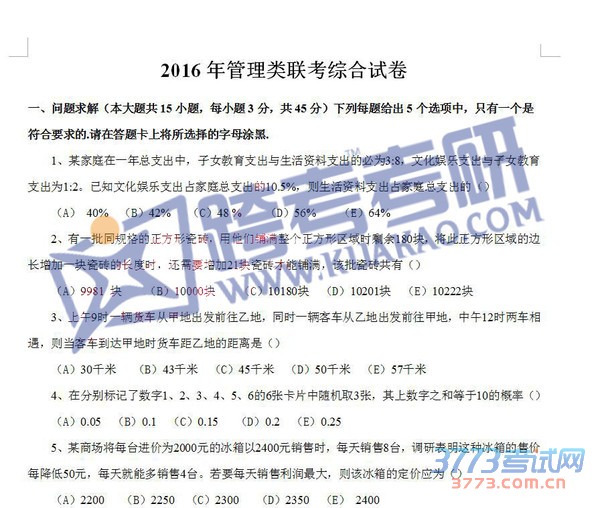 2016年管理类联考综合考研考试已经于12月26日上午结束了,跨考网首发2016考研真题及答案,敬请关注!