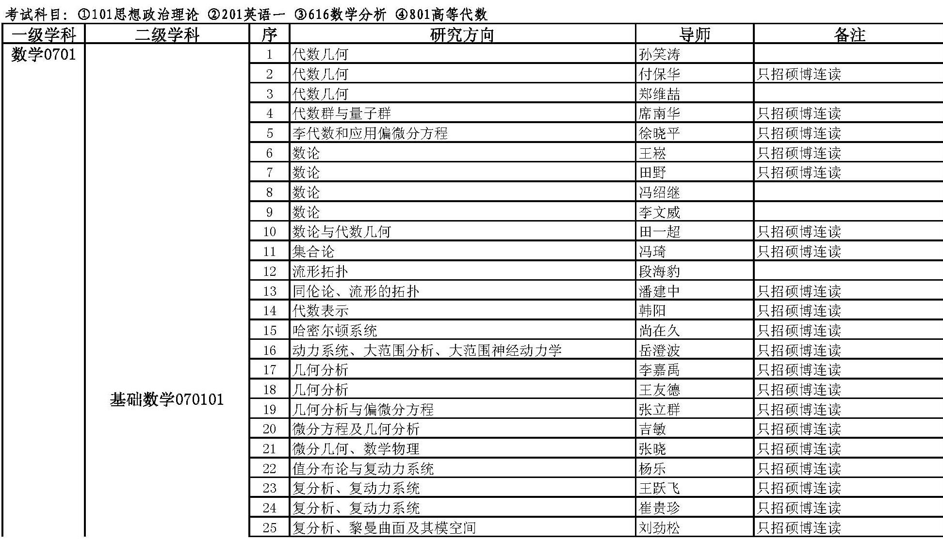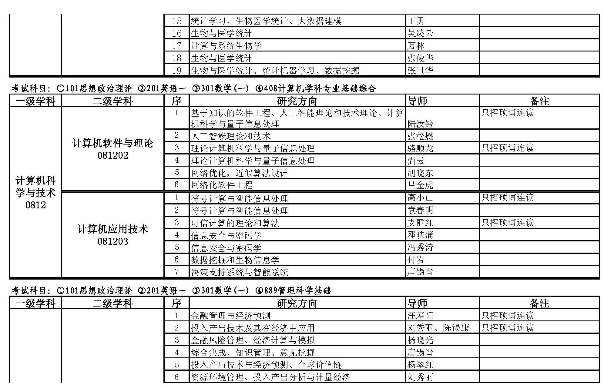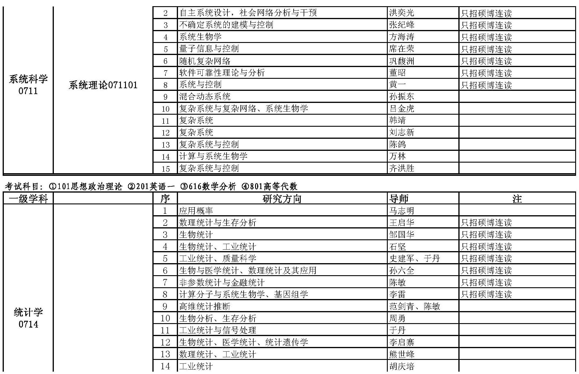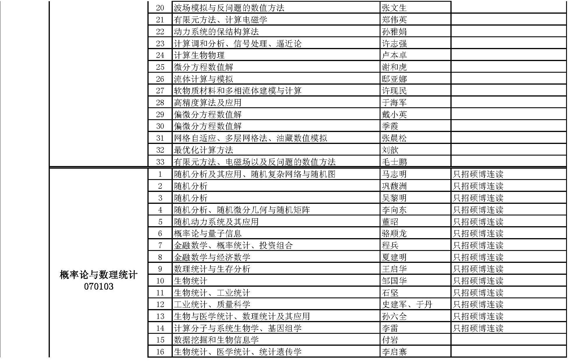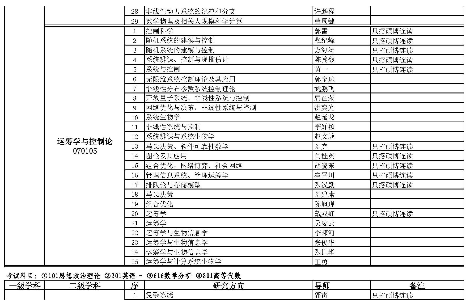 [组图]2015中科院数学与系统科学研究院考研专业目录及考试科目