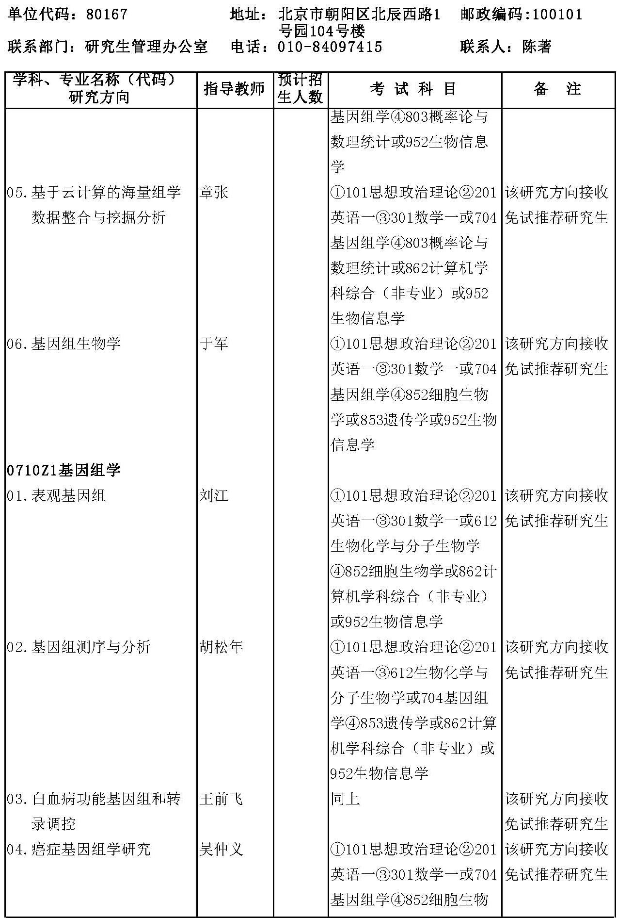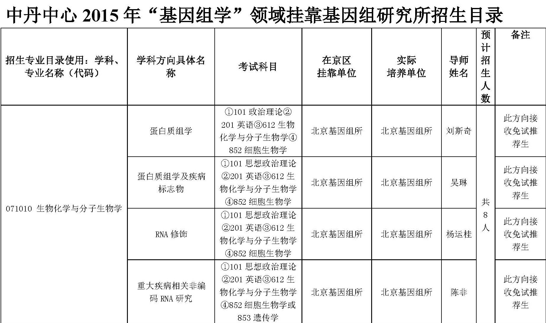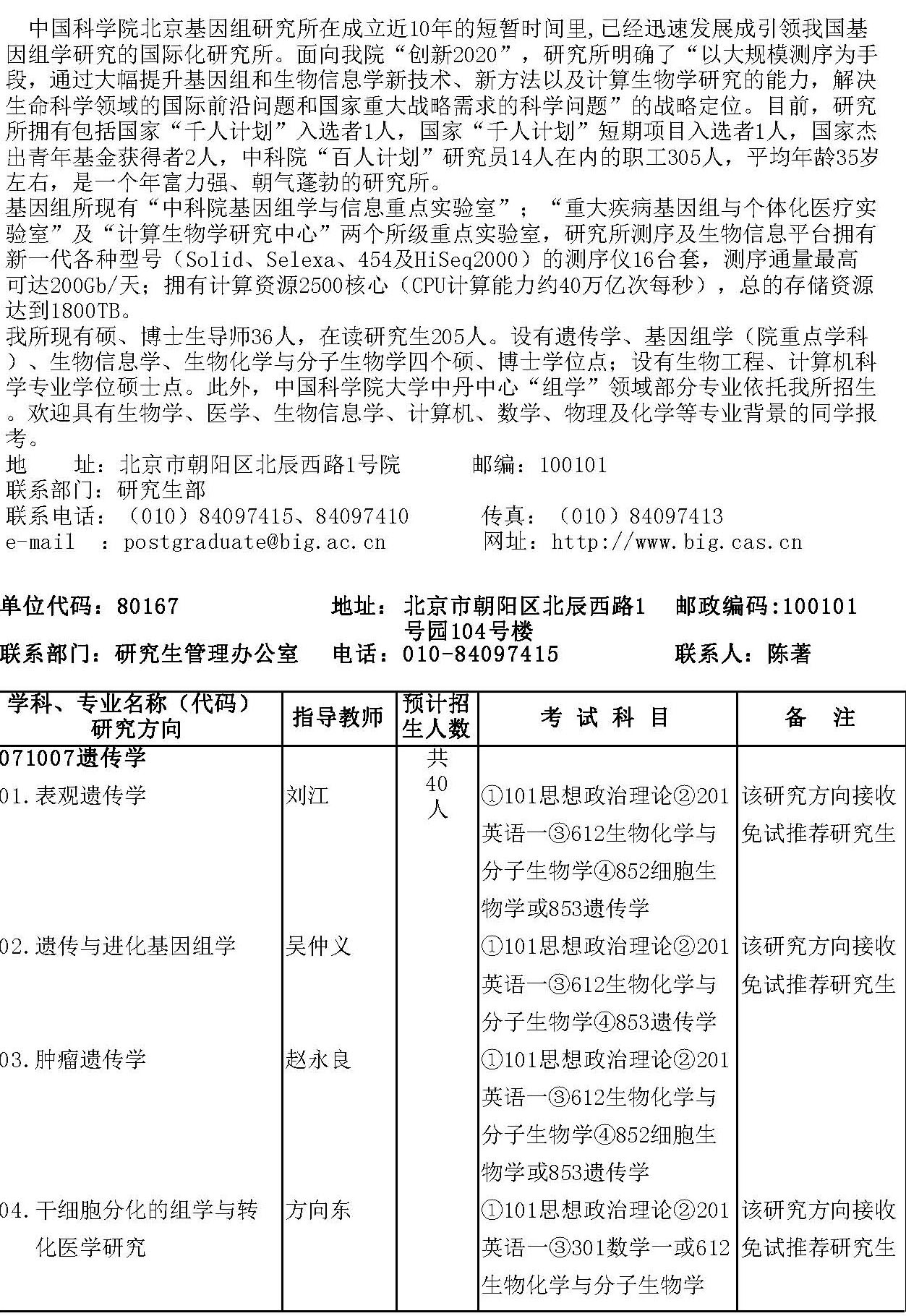 [组图]2015中科院北京基因组研究所考研专业目录及考试科目