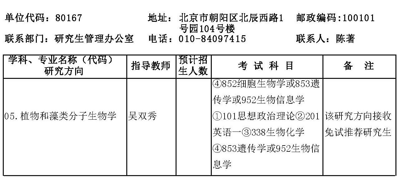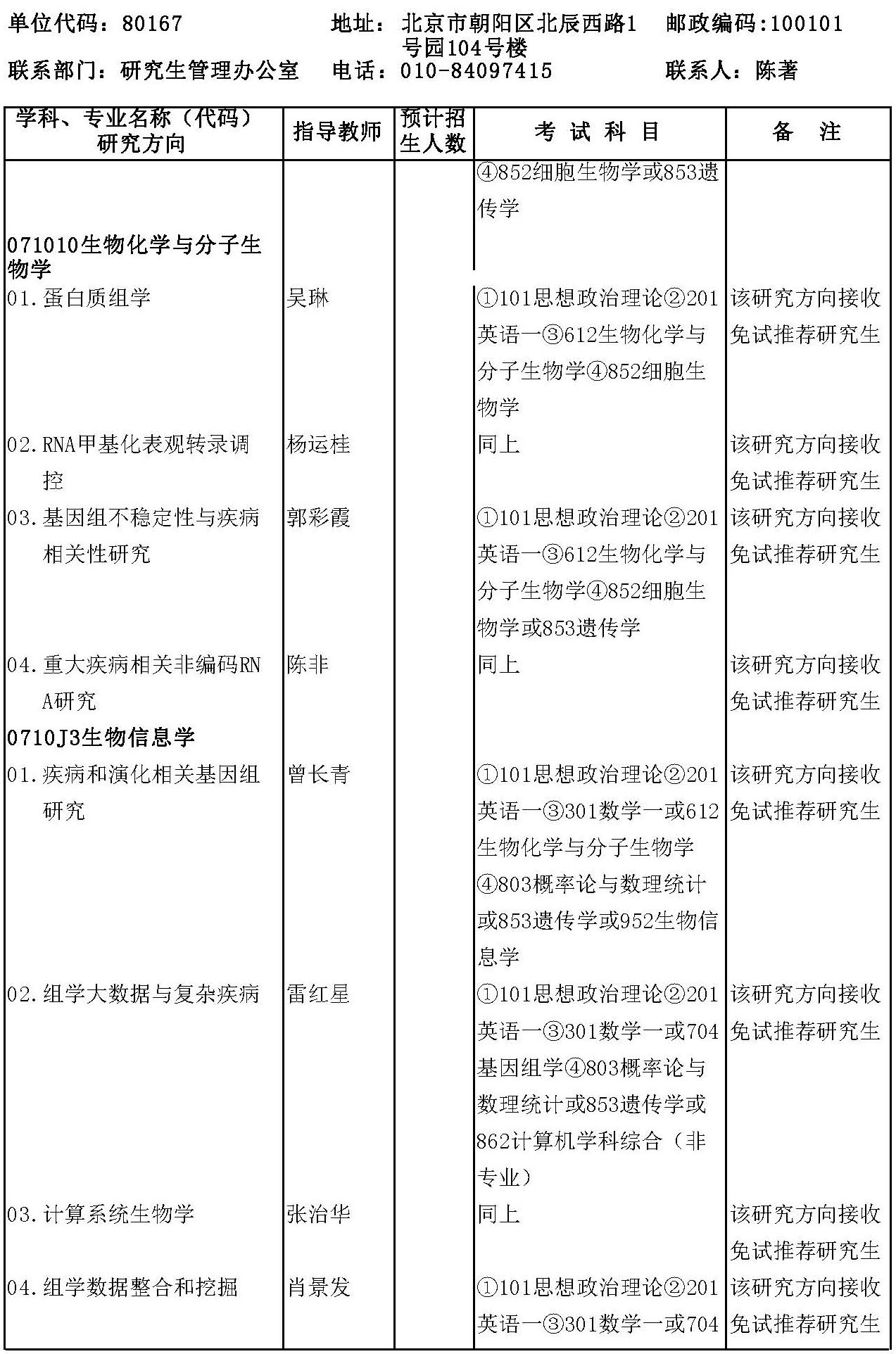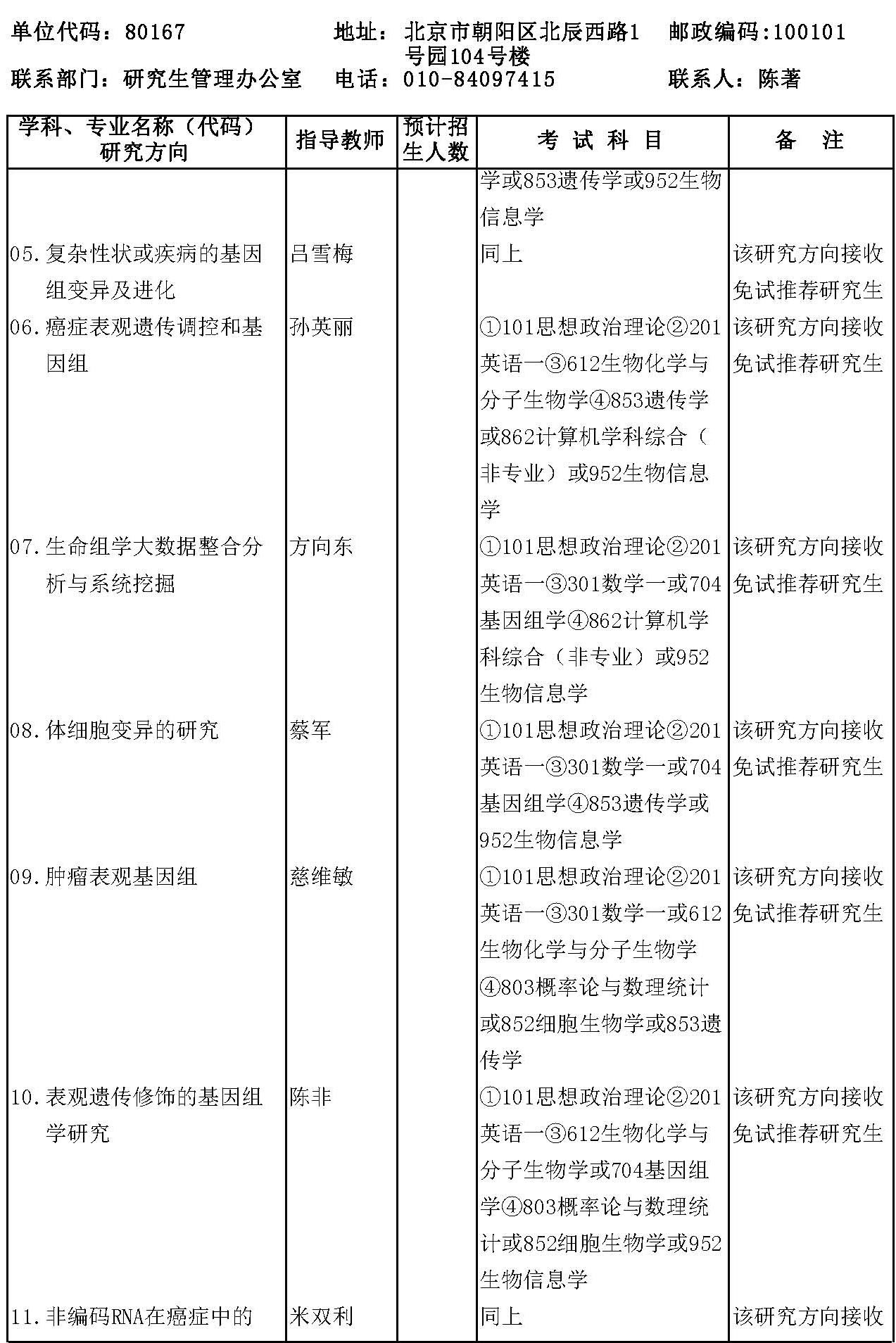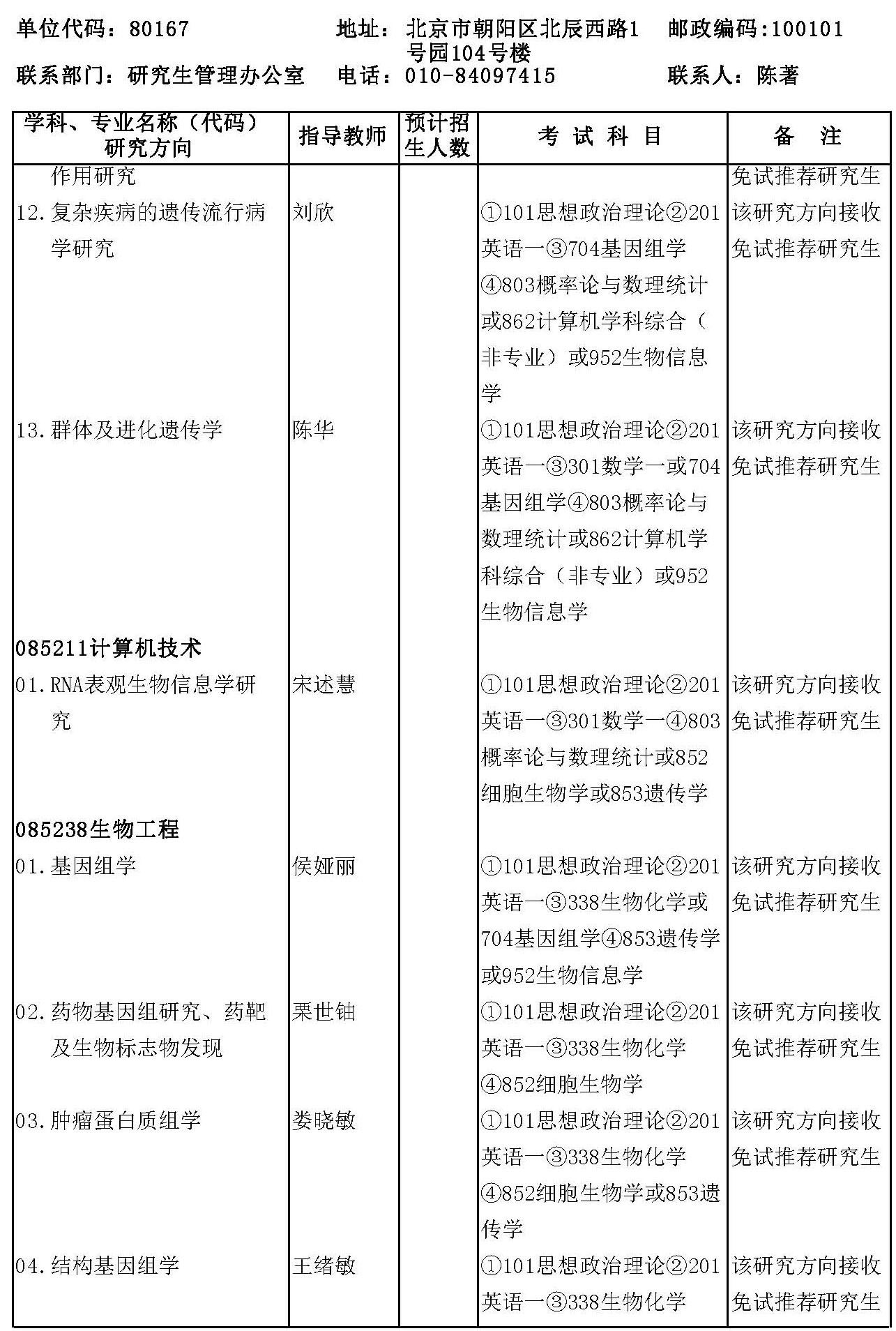 [组图]2015中科院北京基因组研究所考研专业目录及考试科目