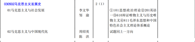 [组图]2015重庆师范大学马克思主义发展史考研专业目录及考试科目