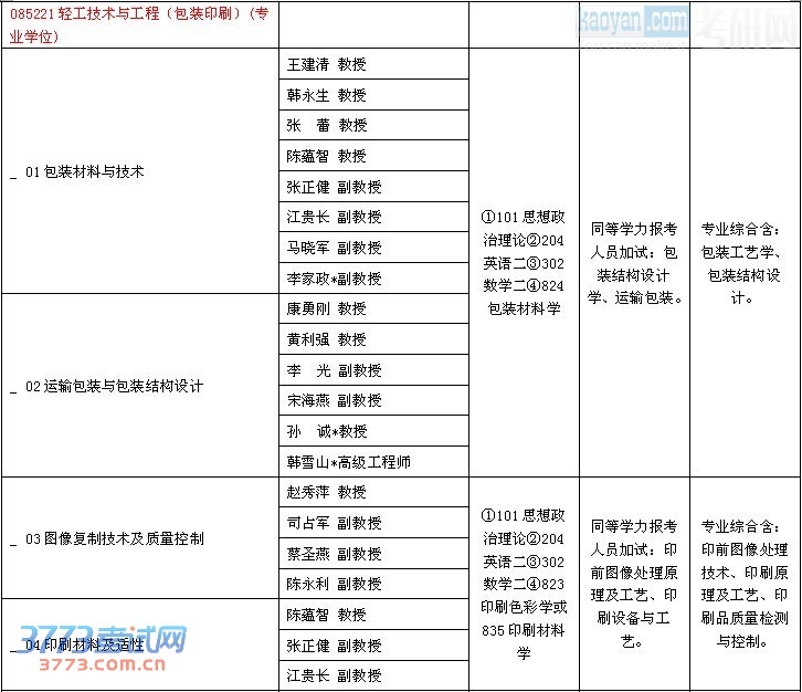 [组图]天津科技大学包装与印刷工程学院2014年考研招生目录