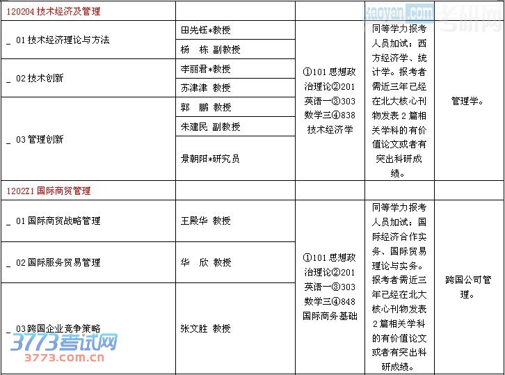 [组图]天津科技大学经济与管理学院2014年考研招生目录