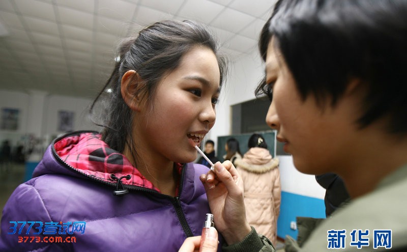 2012年12月11日,青岛市海之魂艺术学校,“模特”们正在加紧训练。为了备战2013年艺考,来自岛城的600余名高三学子聚集在这个集训班上,进行形体、舞蹈、化妆、表演、摄影等科目的训练,迎接2013年高考模特专业及空乘等专业的考试。另据了解,2013第七届全国艺考推荐大会将于元月一号在该校举行。