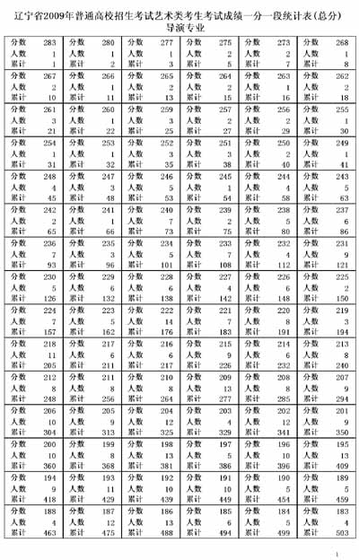 [组图]2009年辽宁省导演专业考试成绩一分一段统计表