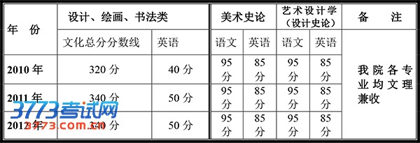 天津美院2010—2012年文化成绩分数线(仅供参考)