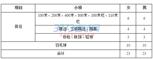 1.招生项目:羽毛球、田径(100米、200米、400米、800米、100米栏、110米栏、跳高、跳远、三级跳远、铅球、铁饼、标枪)