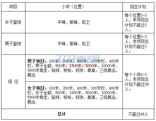 1、报考田径项目的运动员年龄不超过22周岁(1995年9月1日及之后出生),报考篮球项目的运动员年龄不超过20周岁(1997年9月1日及之后出生)。