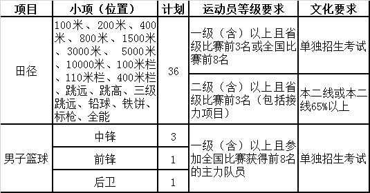 招生对象及报名条件 符合全国普通高等学校年度招生工作规定报考条件,取得高考报名资格;年龄不超过22周岁(1995年9月1日以后出生)。 具体项目、计划及要求如下: