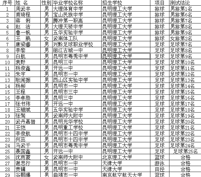 [图文]2009年云南高考高水平运动员公示名单(四)