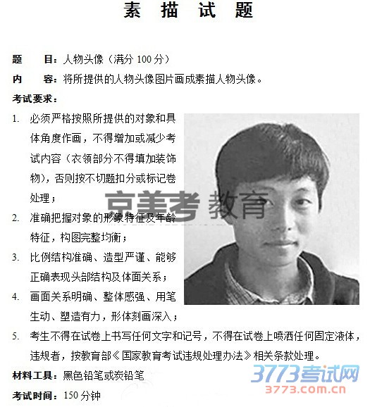 素描考题:默写,男青年正面,光源在右侧,不许带任何装饰;