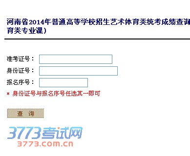 河南省2014年普通高等学校招生艺术体育类统考成绩查询(含对口、专升本艺术体育类专业课)