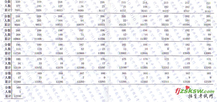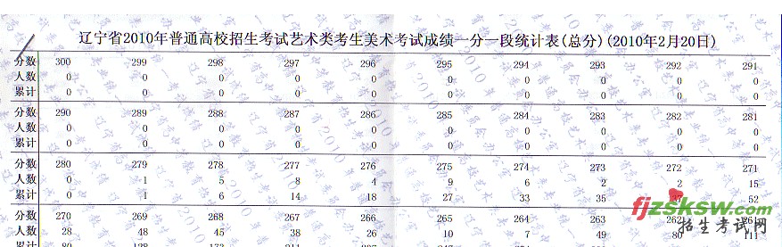 [组图]辽宁省2010年美术类专业统考一分一段表