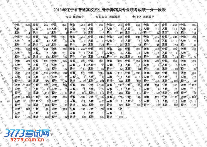 [组图]2013辽宁舞蹈编导专业统考成绩一分一段表