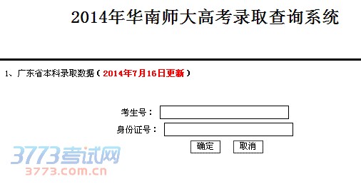 2014年华南师大高考录取查询系统开通了,录取查询网址:http://zsb.scnu.edu.cn/gklqcx2014/cx.php