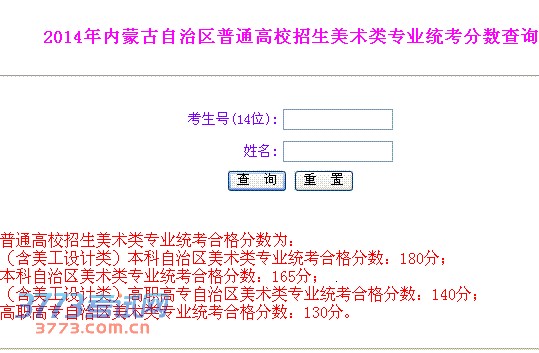 2014内蒙古美术联考统考成绩查询入口 2014年内蒙古自治区普通高校招生美术类专业统考分数查询