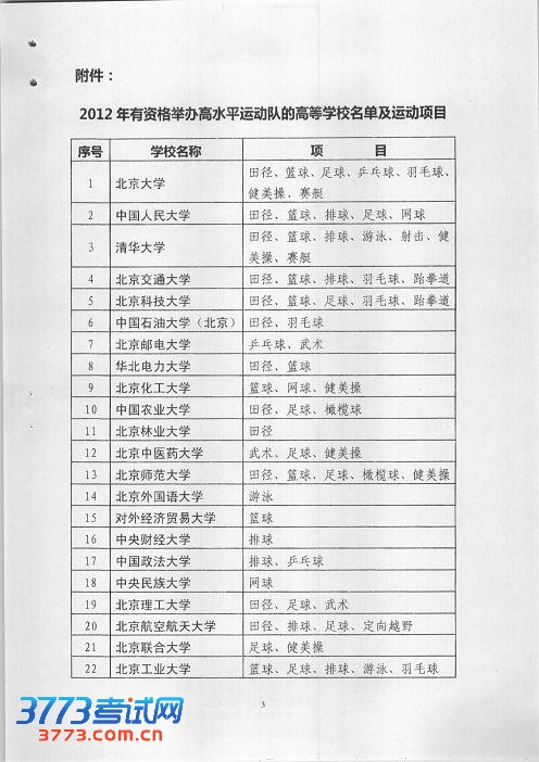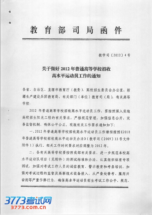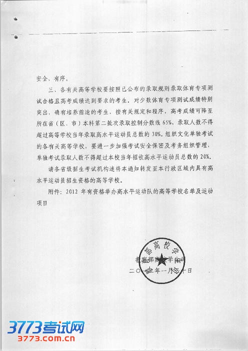 附:1、关于做好2012年普通高等学校招收高水平运动员工作的通知