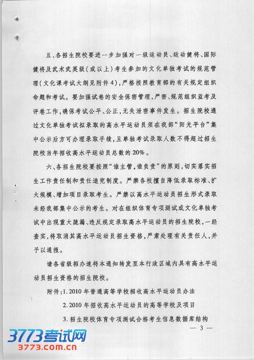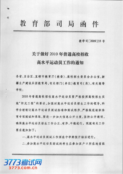2、关于做好2010年普通高等学校招收高水平运动员工作的通知