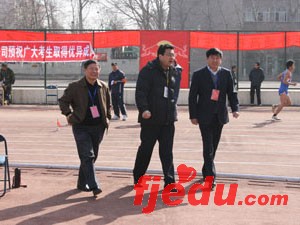 3月19日,我省2008年普通高校招生体育专业测试工作在山东师范大学正式拉开序幕,省教育招生考试院副院长董良军、纪检书记张海峰在山东师范大学体育学院领导的陪同下检查了测试组织实施情况。同时,省教育招生考试院、山东师范大学面向社会和新闻媒体举办了开放日活动,十多名社会监督员及十多家驻济新闻媒体记者到测试区观察了测试情况。