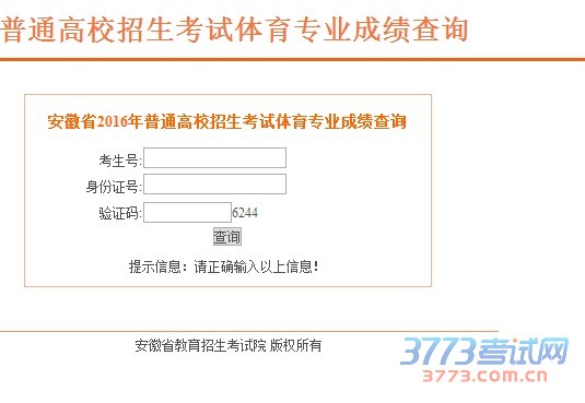 安徽省2016年普通高校招生考试体育专业成绩查询