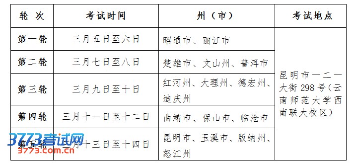 2013年云南体育专业统考时间:2013年3月5日至3月14日(共10天)