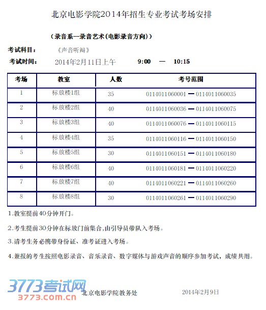 [图文]2014北京电影学院电影录音方向初试考场安排