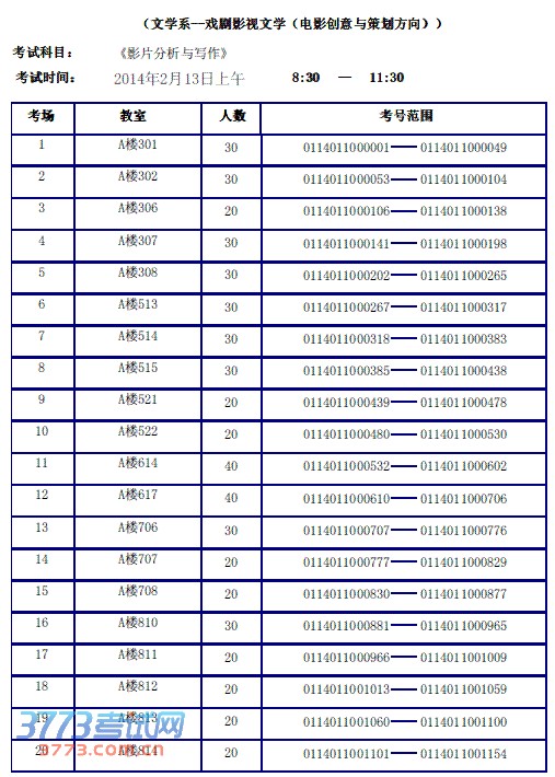 [组图]北京电影学院2014年文学系电影创意与策划方向复试考场安排