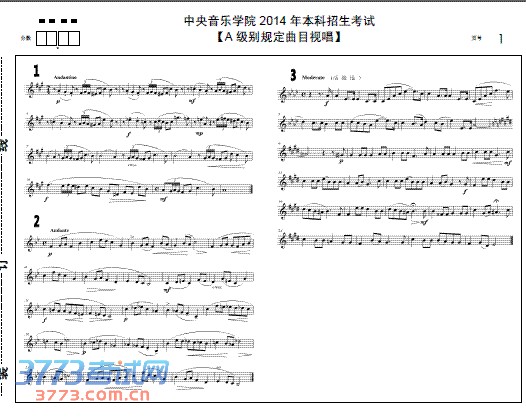 [图文]中央音乐学院2014年视唱练耳规定曲目曲谱