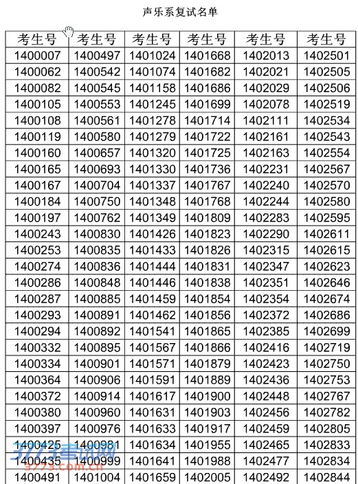 [组图]星海音乐学院2014年声乐系专业考试复试名单