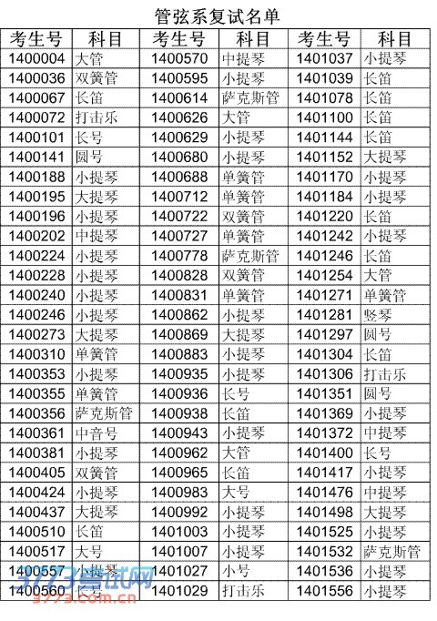 [组图]星海音乐学院2014管弦系专业考试复试名单