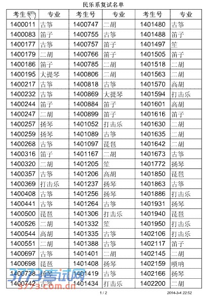 [组图]星海音乐学院2014年本科招生考试复试名单(民乐系)