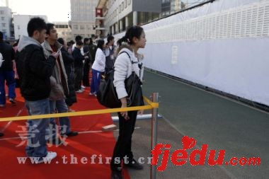 看到自己榜上有名的考生,也都在红毯前欢呼高叫,仿佛自己已经成为了众人追捧的明星。为尽量分散人流,昨天下午5:30,学校在宣传栏内进行了复试的二次发榜。尽管今天将正式开始复试,但考生只要根据自己的复试榜单上的复试时间前一天来表演学院办理复试手续即可。