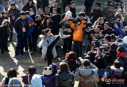 2016年2月15日,北京电影学院2016年艺考初试开始,艺人SHN48赵嘉敏现身,考场外展示自己的舞蹈功力。供图/东方IC