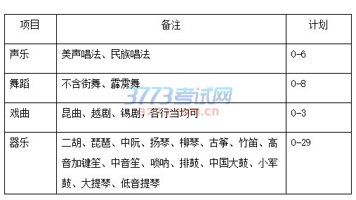 2017年高水平艺术团招生计划不超过我校年度本科招生计划总数的1%,具体项目及计划如下: