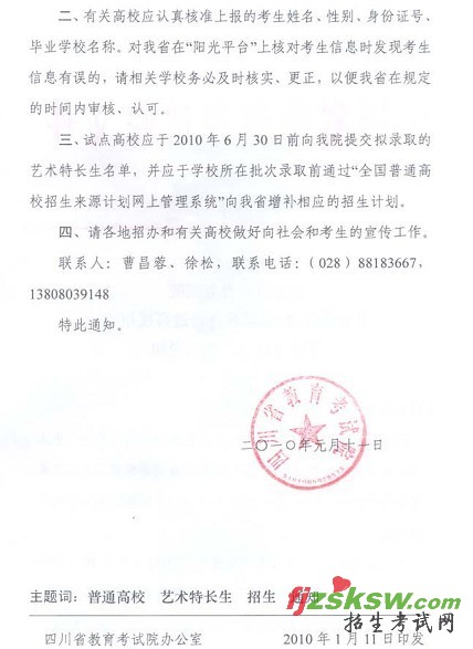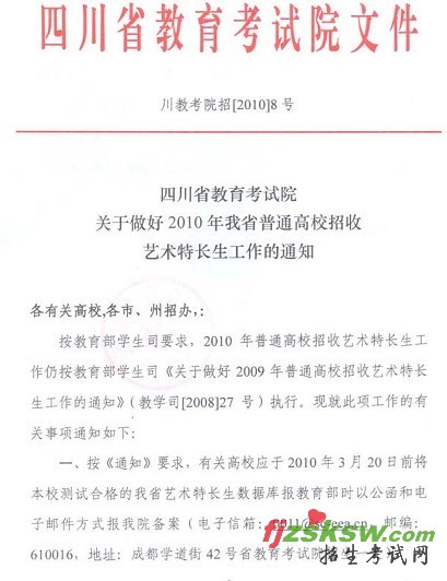 [组图]关于做好2010年四川省普通高校招收艺术特长生工作的通知
