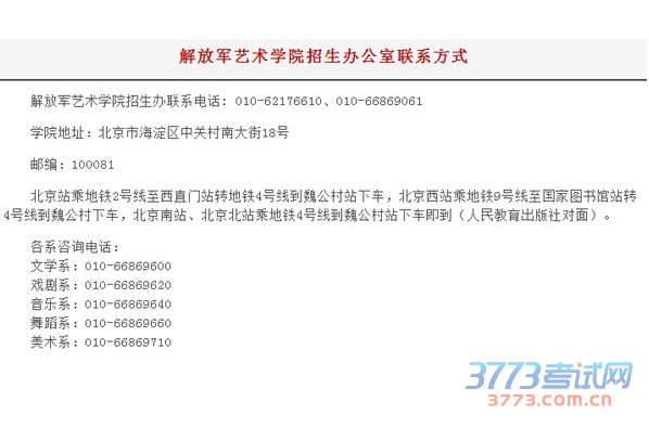 解放军艺术学院招生办联系方式地址电话乘车路线