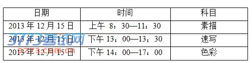 专业考试设素描、色彩、速写三门,总分为100分。各科目占分比例:素描40%、色彩40%、速写20%。