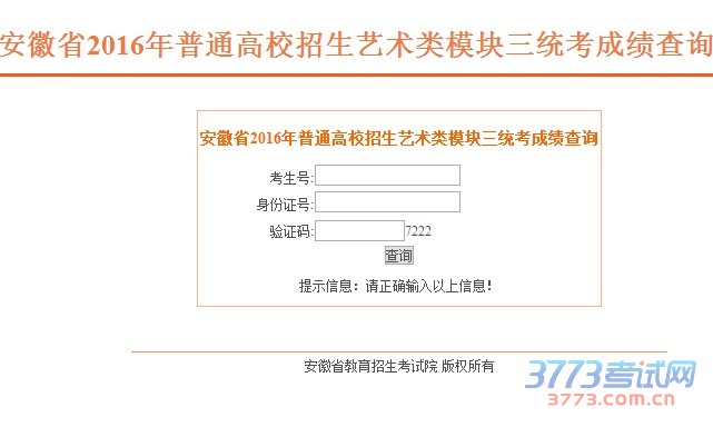 安徽省2016年普通高校招生艺术类模块三统考成绩查询