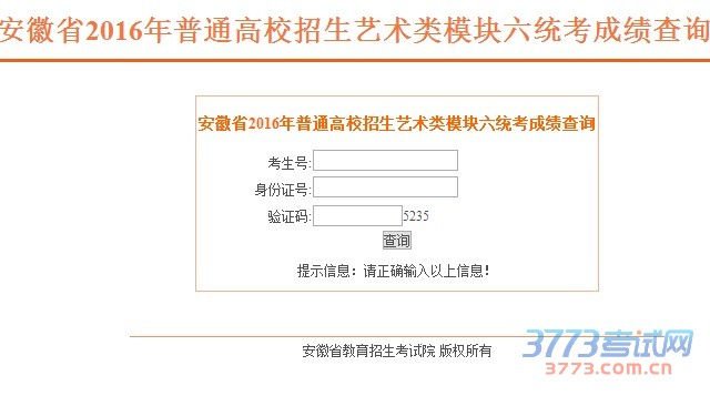 安徽省2016年普通高校招生艺术类模块六统考成绩查询 “模块六”统考合格线为165分
