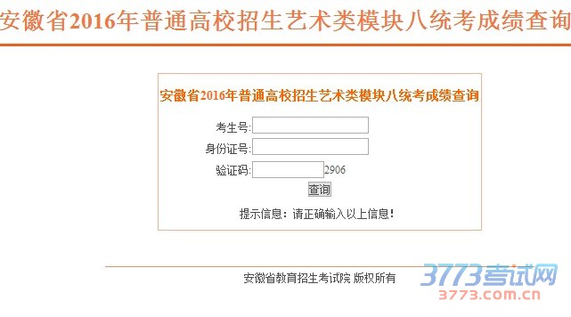 安徽省2016年普通高校招生艺术类模块八统考成绩查询