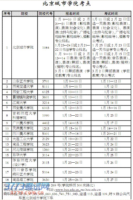 [图文]北京城市学院考点2014艺术类院校考试时间安排