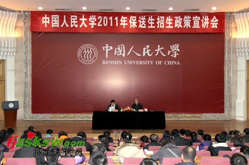 1月17日,“中国人民大学2011年保送生测试”活动正式启动。当晚,中国人民大学在逸夫会议中心举办了“保送生招生政策宣讲会”。纪委副书记兼监察处处长马周年、招生就业处副处长兼招生办公室主任李向前出席了宣讲会,并分别就保送生测试过程中纪检监察情况和招生政策向考生和家长做了介绍。