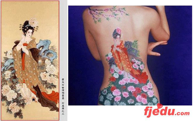 国画版人体彩绘 冰雪肌肤浮现四大美人