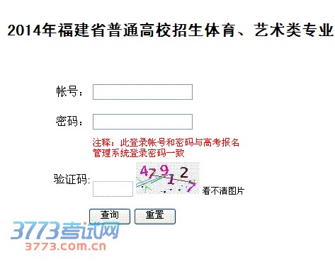 2014年福建省普通高校招生体育、艺术类专业省统一考试成绩查询