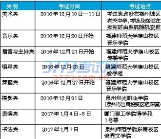 泉州晚报讯(记者曾聪虹 陈士奇)2017年福建省普通高校艺术类专业招生省级统一考试将于12月10日拉开,凡报考普通高考文科艺术类、理科艺术类和高职招考面向中职生考试的美术类、音乐类考生均须参加艺术类省统考。