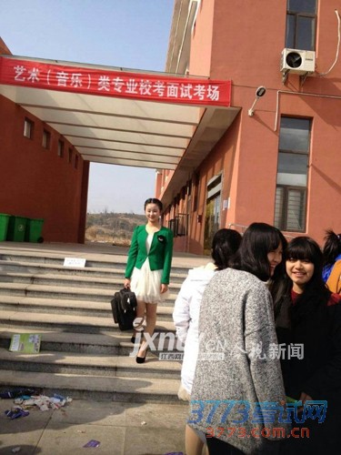 “由于家住市区,离考点有段路,所以天还没亮,妈妈就陪我去美容院化了个妆。然后,带着吉他前往这里考试。”参加播音主持专业考试的熊昕彤同学告诉记者。