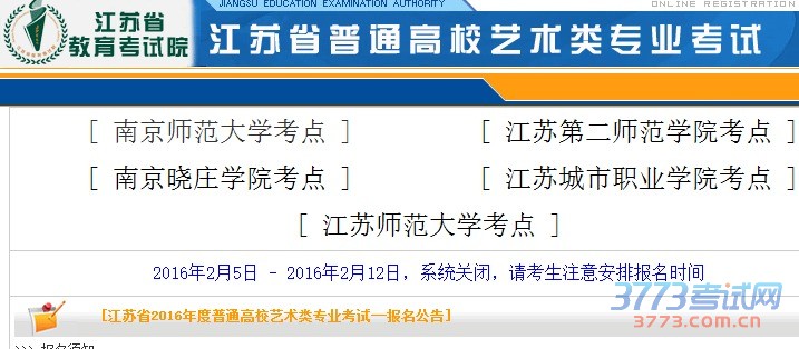 [江苏省2016年度普通高校艺术类专业考试--报名公告]