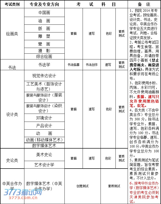 天津美术学院2014年本科招生简章