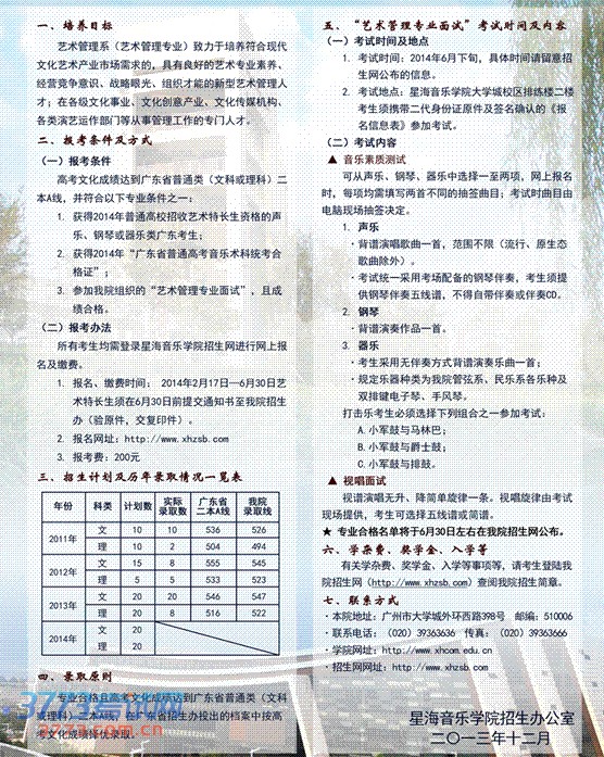 [图文]星海音乐学院2014年艺术管理专业招生简章(广东)